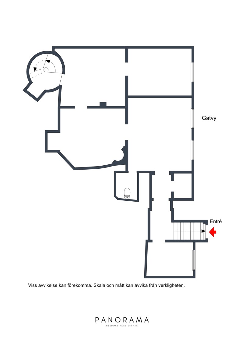 Lokalen, som idag är en råyta, erbjuder stor flexibilitet och kan dels byggas om såsom två mindre bostadsrätter alternativt byggas om till en bostadsrättslokal med kommersiell inriktning. Lokalen har två separata ingångar dels från gatan med trappa ner samt via innergården. Det finns även möjlighet att skapa en uteplats för en enhet på gården