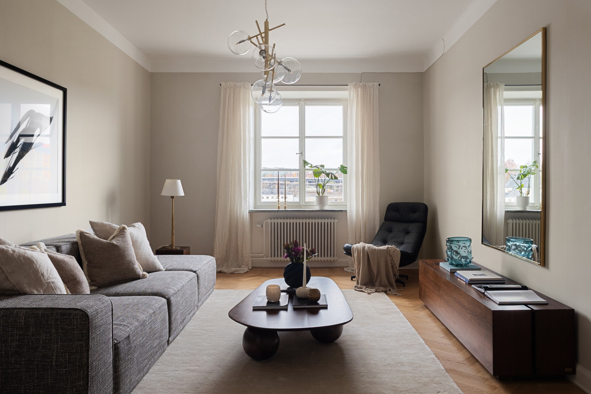 Välkommen till Kungsholms strand – en sjönära, genomtänkt trea om ca 83 kvm där ljus, utsikt och lugn går hand i hand. Bostaden har nyligen genomgått en total uppfräschning med nyslipade golv, målade väggar och nytt kök. Från det generösa vardagsrummet öppnar sig en vacker vy över Karlbergskanalen med Karlbergs slott i fonden, och ut mot söder sträcker sig balkongen som fångar solen från förmiddag till eftermiddag. Den sociala ytan rymmer både soffgrupp och matsalsdel och binds naturligt samman med den stora inre hallen, där det – för den som vill – finns möjlighet att flytta köket och på så sätt skapa ett extra sovrum.